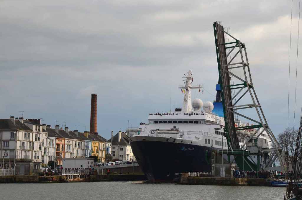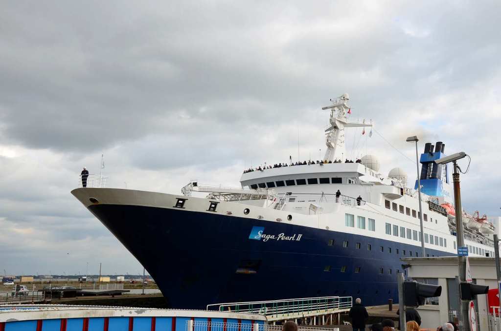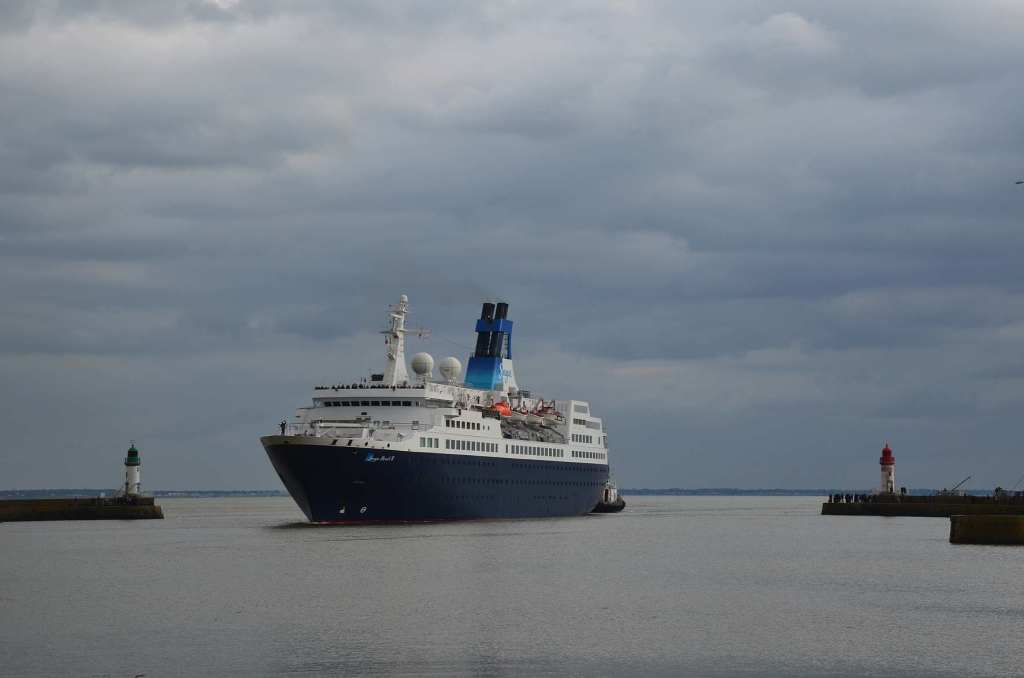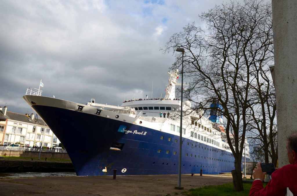 Depuis quelques années, Saint-Nazaire se positionne également comme port d’escale pour les paquebots de croisière. Là aussi, les plus grandes unités ne peuvent pas rentrer dans le port, ils s’amarrent pour la journée au TGO (Terminal de Grand Ouest) situé à Montoir-de-Bretagne. Le spectacle d’un paquebot rentrant dans le port est rare et d’autant plus apprécié. Le petit paquebot britannique Saga Pearl 2 (longueur 164 m, largeur 23 m) est venu s’amarrer deux ou trois fois dans les bassins. Ce diaporama montre l’arrivée par l’écluse sud le 24 avril 2016, une arrivée très photogénique (malgré le ciel bien sombre).