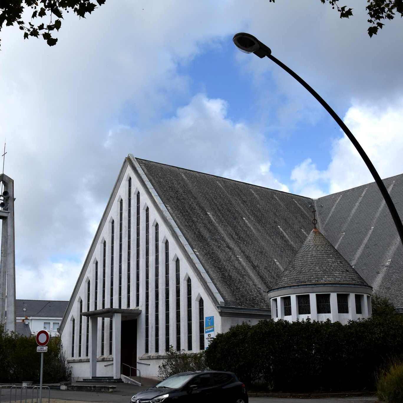 Cette grande église de style néo-gothique a été construite à la fin du 19e siècle pour remplacer la petite église au bord de l’estuaire, près du Vieux Môle, qui était devenue vétuste. Elle a beaucoup souffert sous les bombes de la Seconde Guerre mondiale, et il fallait la restaurer et remplacer les vitraux dans les années 1950. Certains ont été dessinés par René-Yves Creston (1898 – 1964, un artiste né à Saint-Nazaire qui est connu pour avoir été co-fondateur du groupement d’artistes bretons, Ar Seiz Breur).
