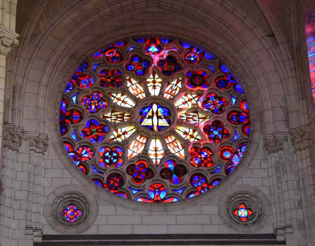 Depuis que j’ai publié cet article, j’ai découvert d’autres vitres très intéressants, dans l’église du quartier de L’Immaculée. Cliquez ici pour en savoir plus.