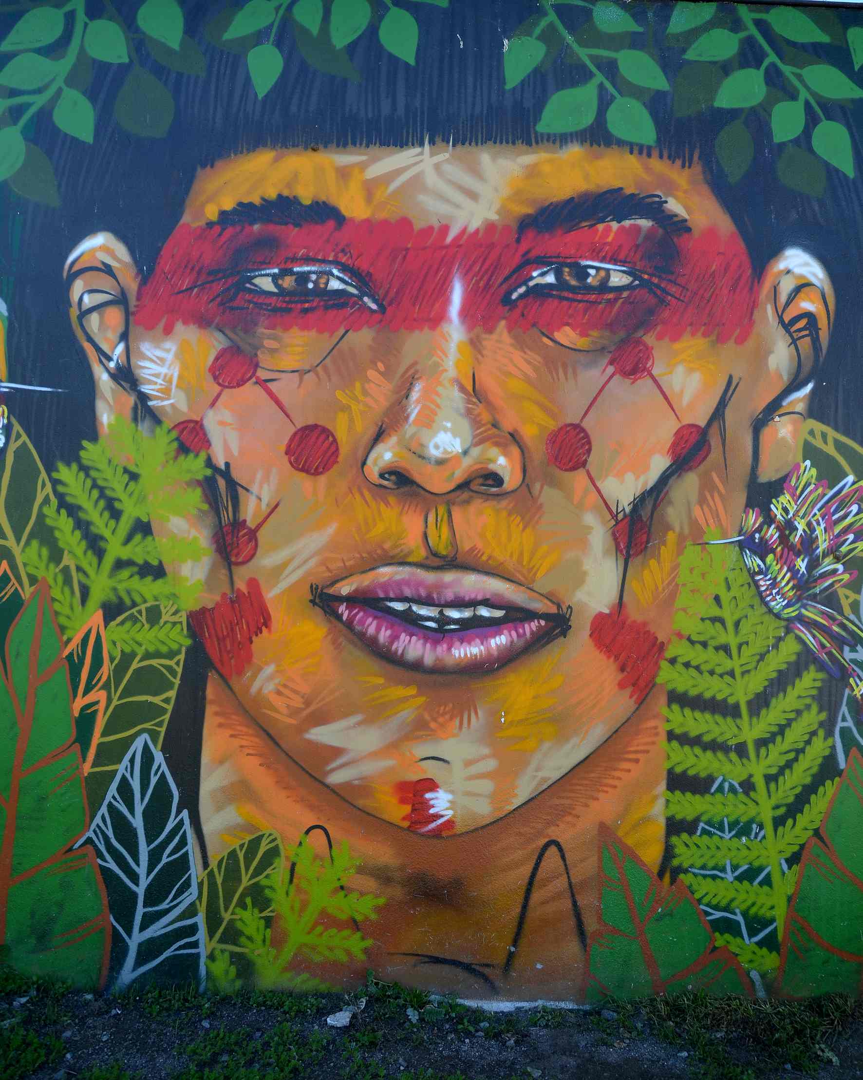 En face de ces deux grandes œuvres, il faut se tourner vers le transformateur électrique entièrement recouvert par le graffeur Charquipunk. Jungle est un hymne à la jungle sud-américaine, une nature et une culture menacées.