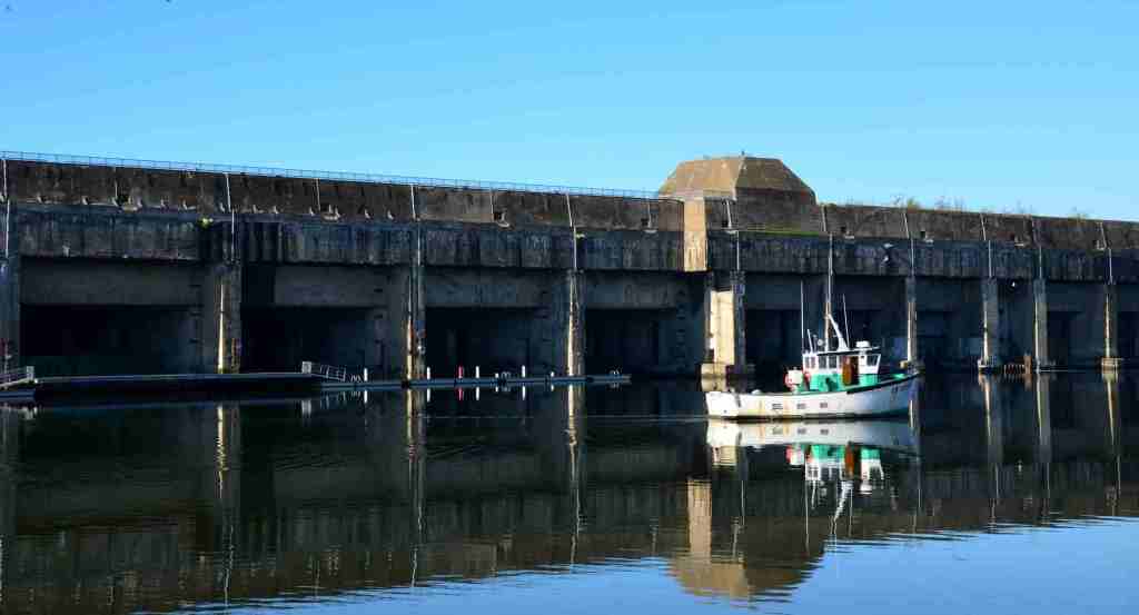 La base sous-marine allemande a été construite en moins de deux ans, à partir de février 1941. Elle abritait deux flottilles de U-Boote dans ses 14 alvéoles.