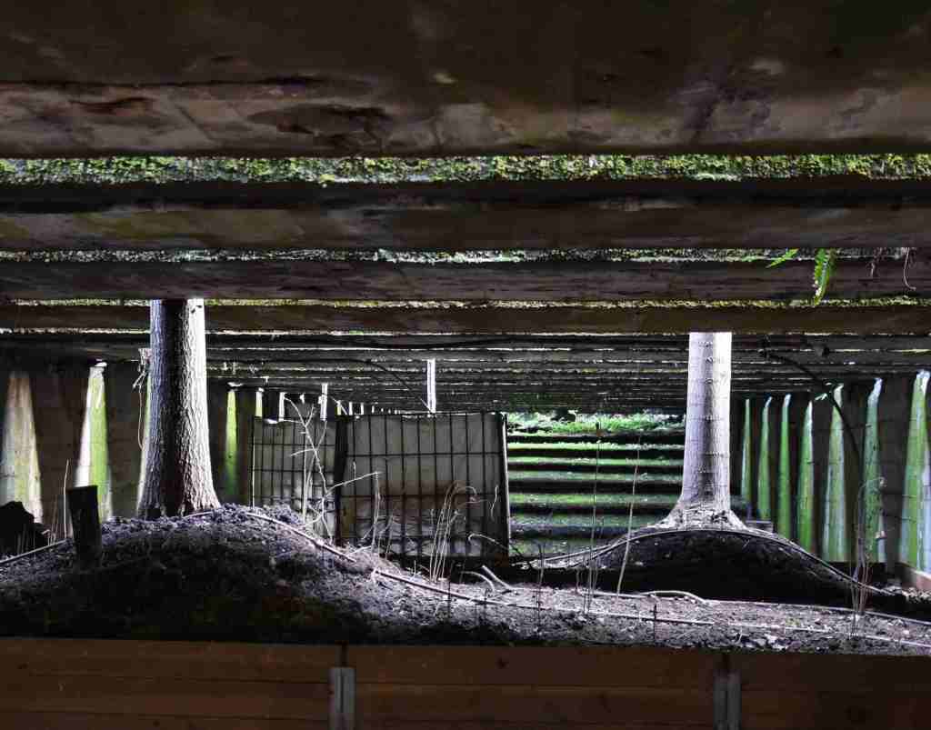 Explorez aussi les plantations du Jardin du Tiers Paysage de Gilles Clément, autre œuvre du parcours Estuaire, et essayez de trouver les racines des arbres plantés sur le toit de la base, qui se présentent ainsi :