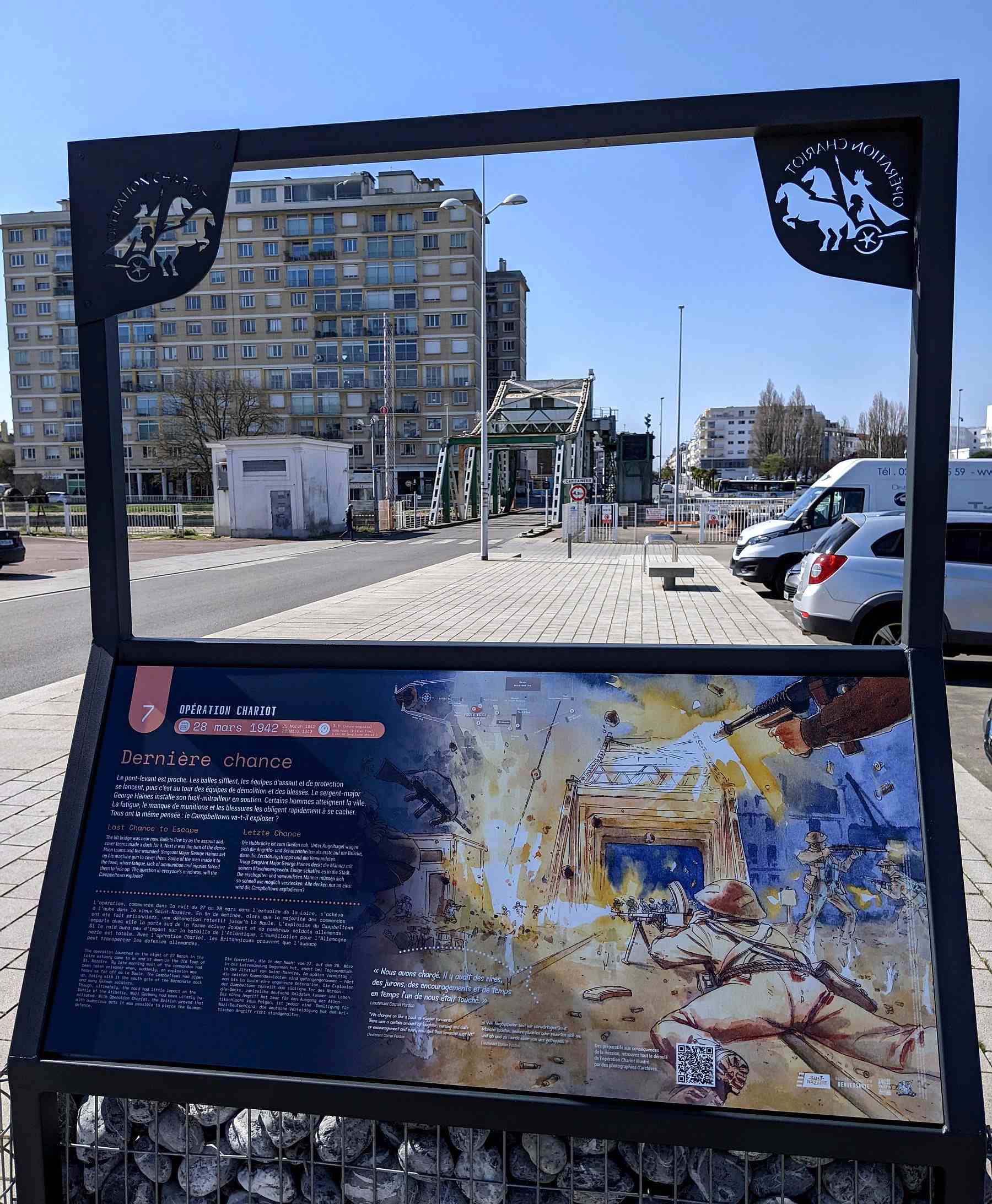 A l’occasion du 80e anniversaire du raid, en mars 2022, la Ville de Saint-Nazaire et Saint-Nazaire Agglomération Tourisme ont créé un parcours sur les lieux mêmes des affrontements entre Britanniques et Allemands. Sept panneaux, entre le pont levant et la forme-écluse Joubert, cible principale du raid, vous diront tout sur cette opération et son déroulement quasiment minute par minute. Les très belles illustrations, réalisées par le dessinateur Benoît Blary, font revivre ces événements dramatiques (ici lien vers le plan du parcours).