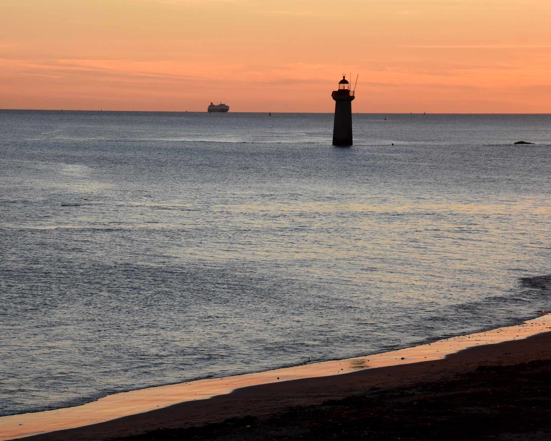 Droits comme des i, gardiens de l’estuaire et du port, plusieurs phares jalonnent le littoral de Saint-Nazaire. Vieux Môle, jetées est et ouest, phare de Villès-Martin… on peut très facilement les voir de près ! Entre nous : j’ai hâte de pouvoir les retrouver au moment du coucher de soleil (la photo ci-dessous date de fin novembre), en ce moment c’est incompatible avec le couvre-feu…