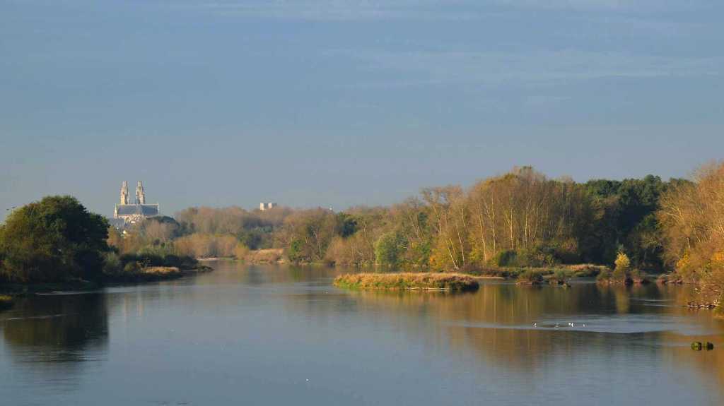 La Loire en automne, entre Tours et Amboise. Au loin la cathédrale de Tours.