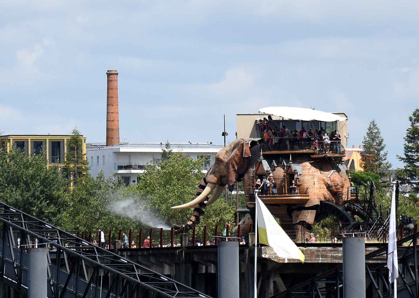On embarque à la Gare maritime de Nantes. Le fameux éléphant, en promenade, semble saluer de loin notre bateau qui largue les amarres. Passage devant la butte Sainte-Anne, l’île de Nantes, Trentemoult, un petit chantier naval à Chantenay, puis sous le pont de Cheviré. Nous sommes dans la partie dite « endiguée » de l’estuaire, ici la Loire ne dépasse pas les 200 mètres de largeur.