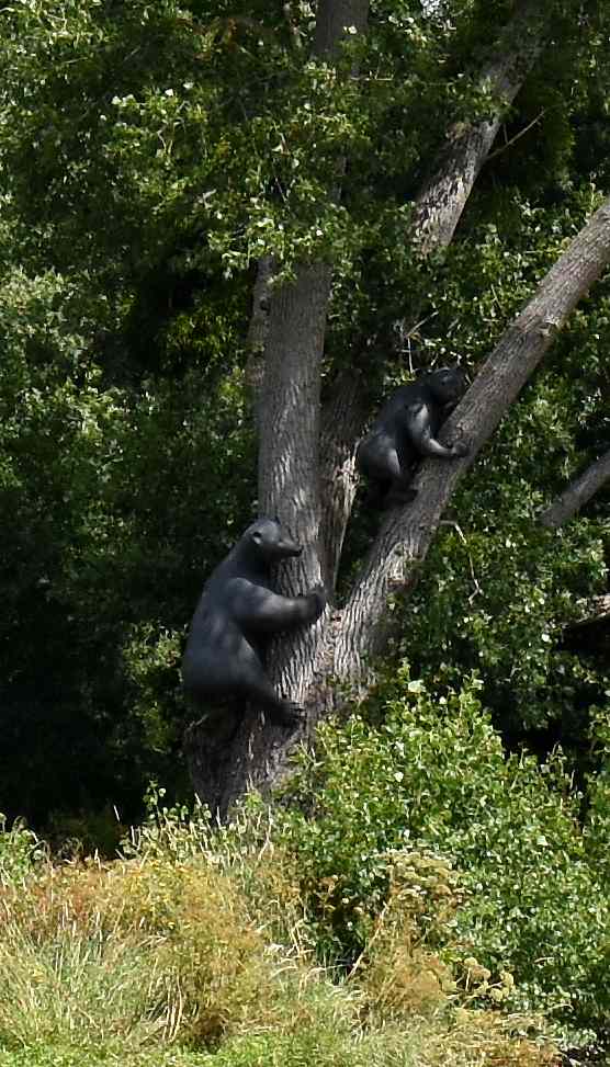 Très vite après le pont de Cheviré on a l’impression de basculer déjà dans un autre univers. Alors que derrière nous se dessine encore tout un paysage industriel et portuaire, la rive sud se partage entre étiers secrets, pêcheries, les premières roselières. Par moments on se frotte les yeux : des ours qui grimpent dans un arbre ? Une maison qui ressemble comme deux gouttes d’eau à une maison réellement existante (à Lavau-sur-Loire) mais qui flotte dans le fleuve… à moins qu’elle ne se soit échouée dans la vase ? Ces œuvres de Sarah Sze et de Jean-Luc Courcoult font partie du parcours Estuaire ; je vous en présente d’autres dans mon article Estuaire parcours d’art.