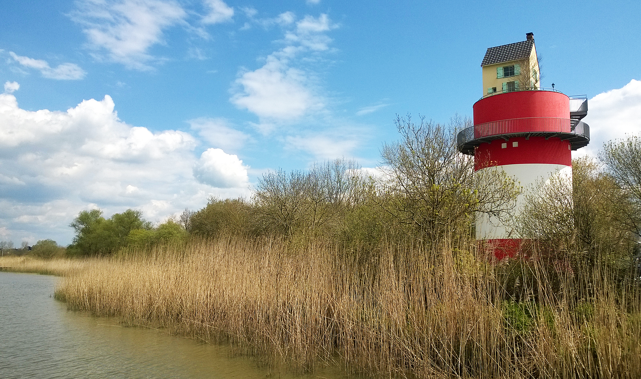 Ici, vous êtes aussi au pied de la Villa Cheminée. Créée par l’artiste japonais Tatzu Nishi, dans le cadre du parcours d’art Estuaire, ce mini-pavillon se niche à 15 m de hauteur, sur une tour dont le rouge et le blanc reprennent les couleurs de la centrale thermique voisine.
