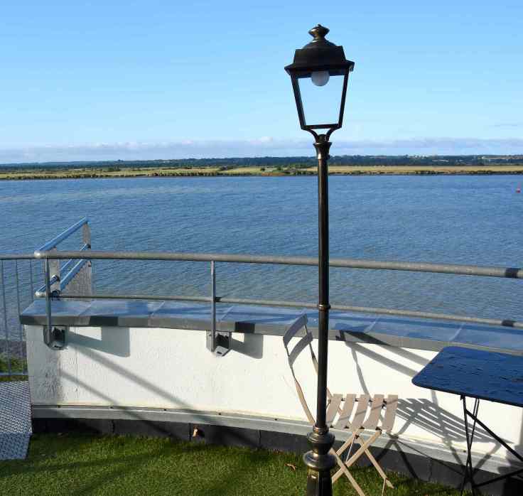La vue de là-haut est grandiose, comme vous pouvez le constater facilement, car la terrasse est accessible gratuitement chaque dimanche de 14 h à 18 h, toute l’année sauf janvier. Mais la Villa Cheminée est aussi une chambre d’hôtes (toutes les infos sur le site de Nantes Tourisme ; attention, c’est souvent complet des mois à l’avance). Pendant l’été 2020, j’ai réalisé un vieux rêve : j’y ai passé une nuit. J’avais hâte de voir un beau coucher de soleil sur la Loire… mais la météo n’a pas du tout joué le jeu : la flamboyance du soleil couchant était remplacée par des nuances de gris dans un ciel plus que tumultueux, avec de rares trouées de soleil. Pas grave, je garde quand même un souvenir ébloui de ce bref séjour.