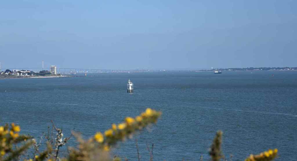 … et la vue la plus grandiose sur l’embouchure, depuis le fort de l’Eve. Ici on s’approche de la limite géographique de l’estuaire : côté nord c’est la pointe de Chemoulin, côté sud, la pointe de Saint-Gildas à Préfailles.