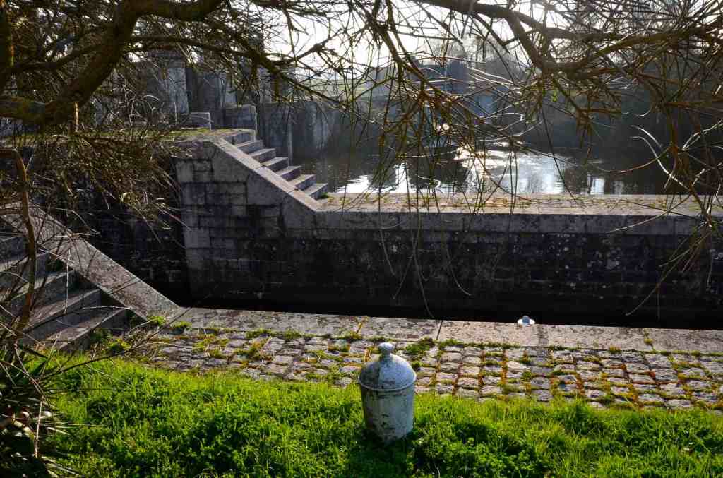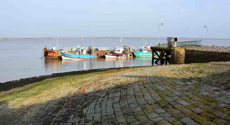Je reprends la voiture, direction Paimboeuf, mais d’abord une halte à Corsept, à l’ancien port de la Maison Verte. Eh oui, là où aujourd’hui on ne distingue guère plus qu’une écluse, un étier envasé à marée basse et des roselières, se trouvait un de ces nombreux petits ports de Loire dont je parle dans le deuxième article consacré à l’estuaire. La promenade se fait sur une digue, elle aussi constellée de pêcheries.