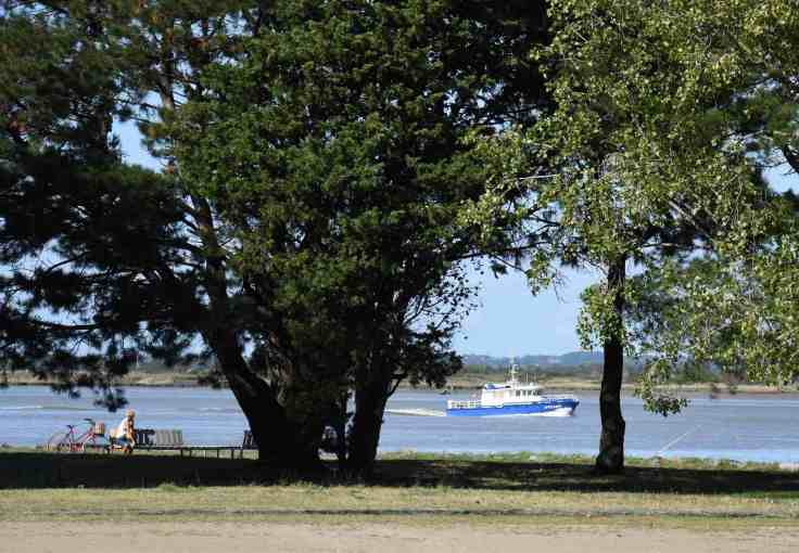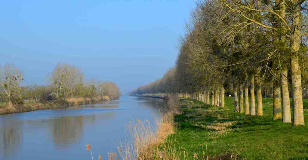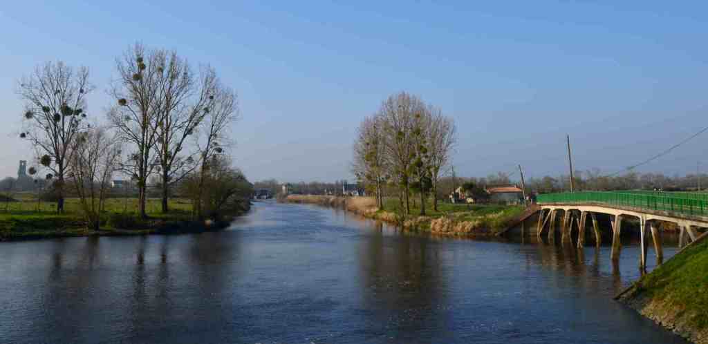 Avec le canal on va s’éloigner de la Loire, restons d’abord un peu en bordure du fleuve. A La Martinière, on est dans la zone « intermédiaire » de l’estuaire, dans un milieu naturel largement préservé. La vue sur la rive nord est saisissante. Avez-vous vu tous les de nids de cigognes dans les arbres ?