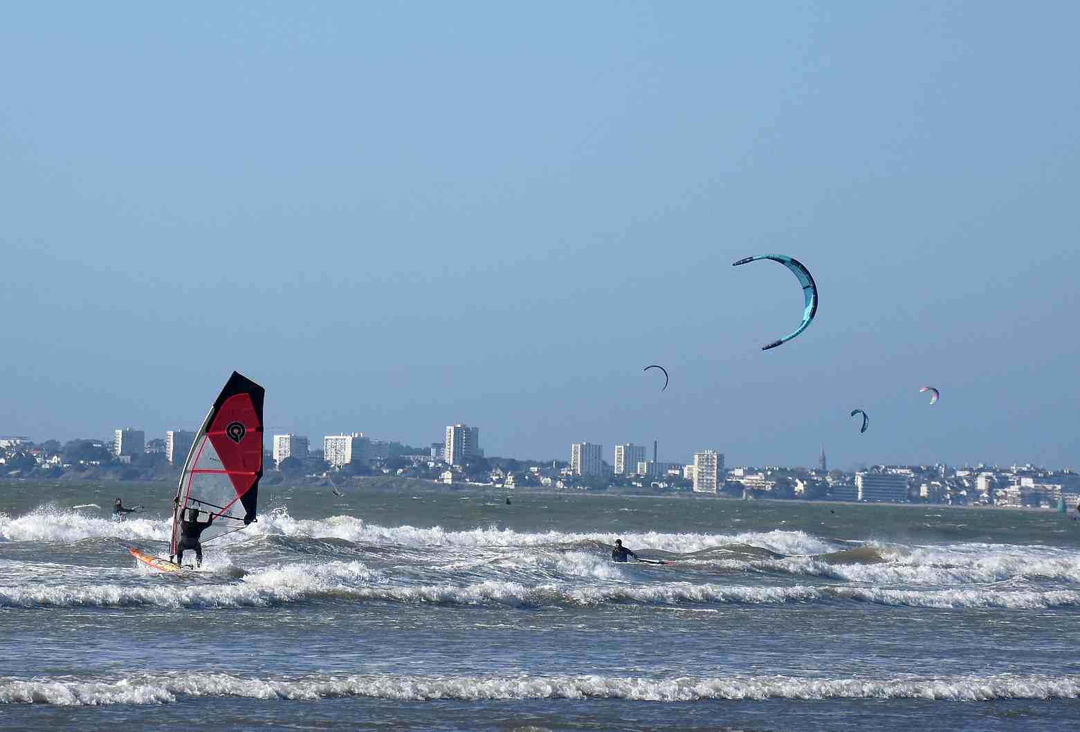 Il faut s’arrêter juste après le pont, à Saint-Brevin-les-Pins. Là il y a deux promenades le long de l’estuaire que j’aime beaucoup. L’une part du fort de Mindin (et du Serpent d’océan) en direction du large, longeant des plages et une zone naturelle protégée. Ici l’estuaire me paraît intime et sauvage à la fois, solitaire, mais aussi s’animant toute l’année avec les adeptes de la glisse. Ça sent déjà l’océan…