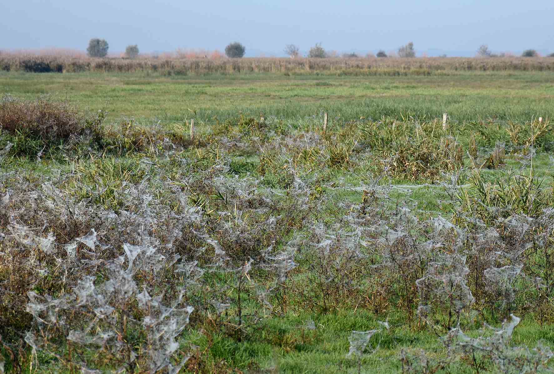 Certains matins, la brume estompe les contours et les couleurs, et dans les prés d’éphémères tissages s’accrochent aux moindres brindilles.