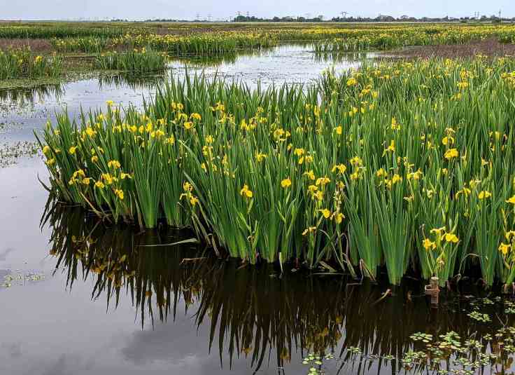 Si le jaune des iris illumine le marais, il y a malheureusement une autre fleur jaune qui, elle, n’est pas la bienvenue en Brière : la jussie. Plante très invasive, il faut l’arracher chaque été à la main pour essayer d’endiguer sa prolifération dans les prairies humides.