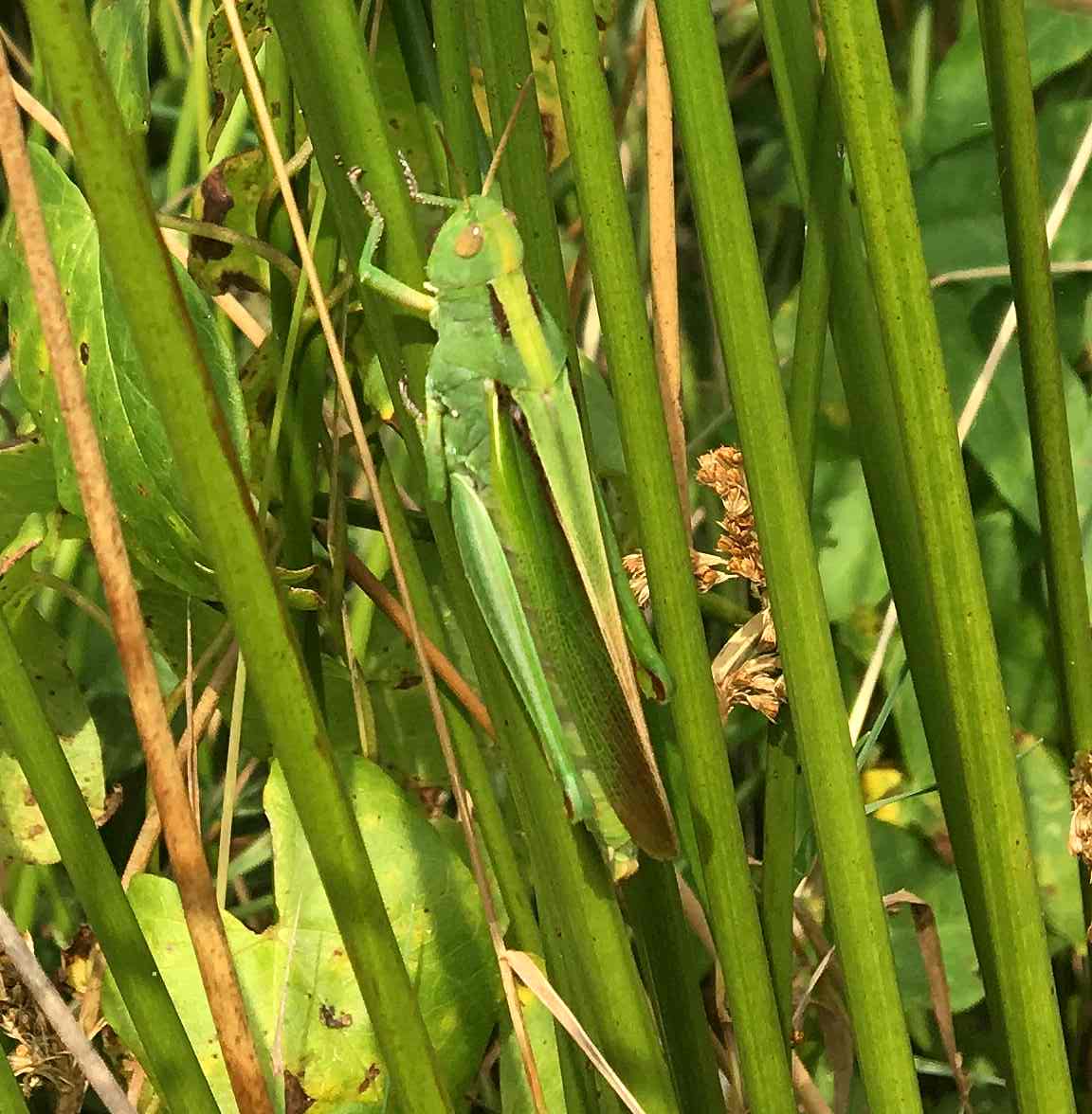 Ailleurs, les randonneurs vont vérifier les toutes premières mûres – elles commencent à prendre de la couleur mais pas encore de la douceur – et photographier des jardins débordant de fleurs. La cigogne, imperturbable, espère que les grenouilles seront au rendez-vous plus tard dans la journée, la sauterelle se prend pour un caméléon et les vaches prennent parfois des drôles de poses quand elles se regroupent au bord de l’eau.