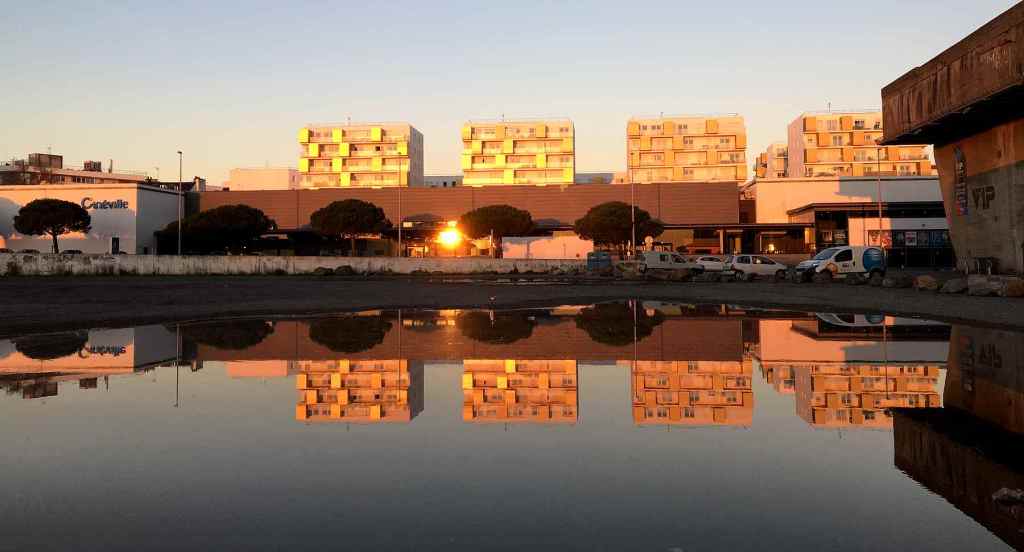 Un puddle en anglais, c’est une flaque d’eau toute bête. Chez les instagrameurs, le fin du fin c’est de « faire des puddles », c’est-à-dire prendre des photos avec des reflets parfaits dans une flaque d’eau. Chez les maîtres de cet art – dont je ne fais pas partie – de toutes petites flaques prennent alors des allures de miroirs immenses et le résultat est souvent bluffant. Comme j’ai dit, je n’en suis pas là, même si je suis plutôt contente de la photo des immeubles dorés par le soleil levant et se reflétant dans une flaque devant la base sous-marine… comme quoi la beauté se niche dans les endroits les plus inattendus ! En tout cas je ne regarde plus les flaques d’eau de la même manière.