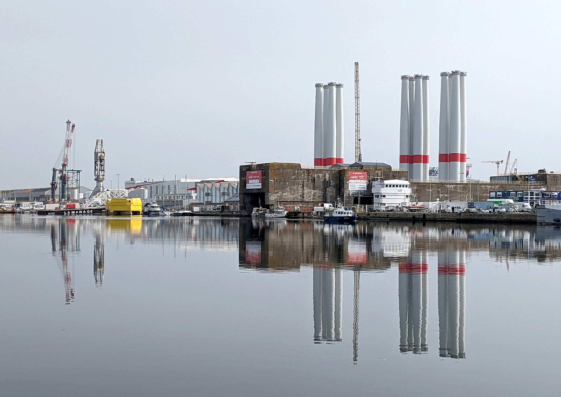 Et ici c’est le courant du fleuve qui brise les lignes de ce reflet du pont de Saint-Nazaire dans une ambiance de brume un peu mystérieuse.