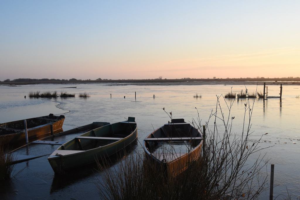 En Brière, le paysage givré au moment du lever du soleil est magique, comme j’ai pu l’observer dans les ports de La Chaussée Neuve et du Vivier.