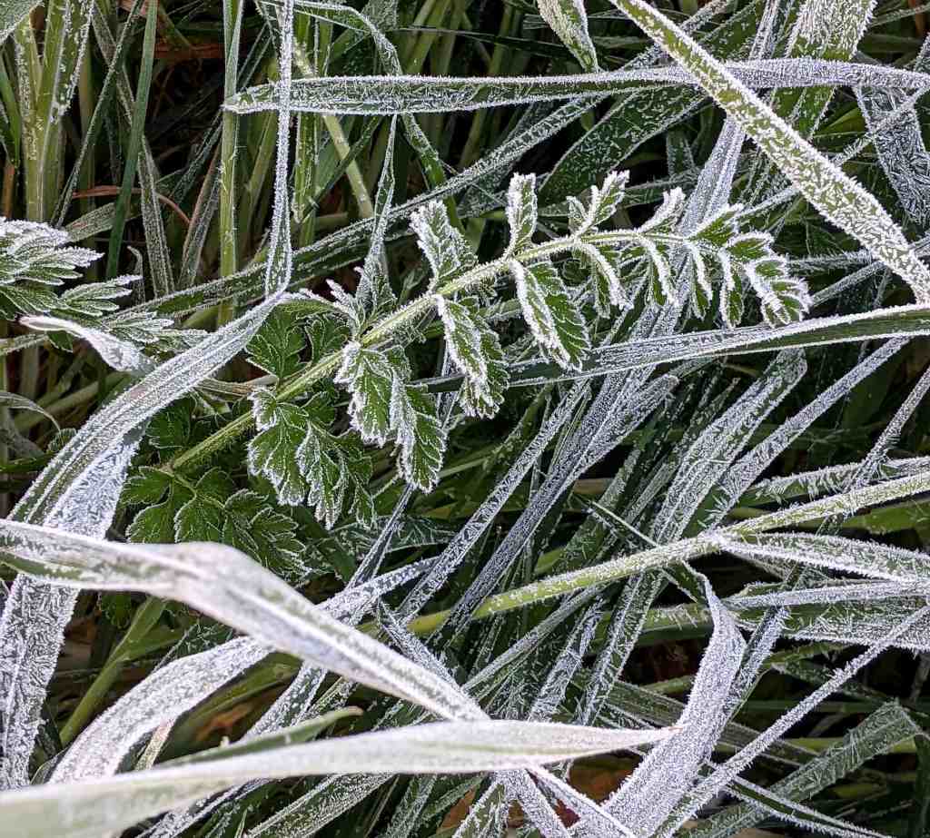 Le blanc du givre matinal est bien plus fréquent. Il transforme le moindre brin d’herbe, la moindre feuille, en une petite merveille qui va se dissoudre dès que le soleil aura percé les ombres.