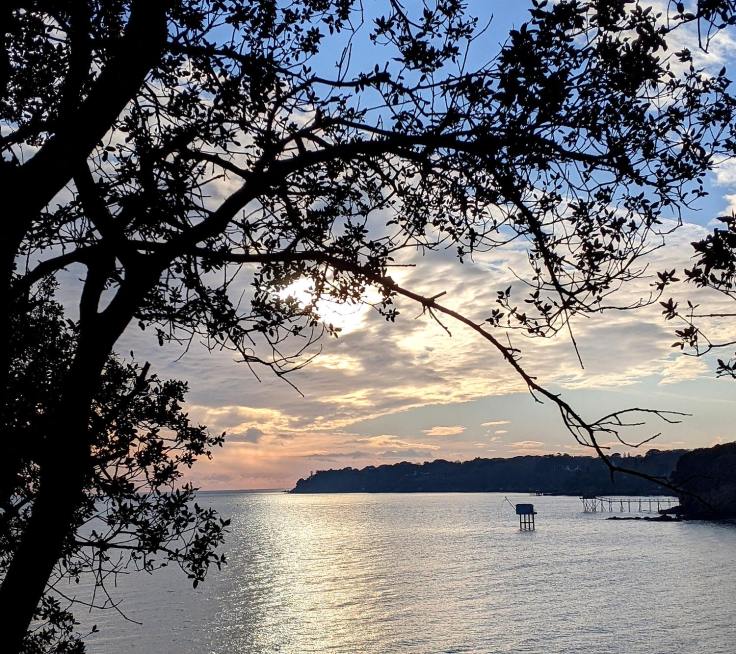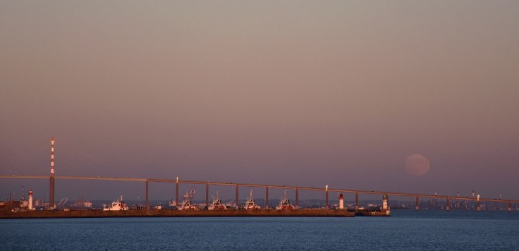 En arrivant à la pointe de Villès, profitez de la vue sur le panorama de l’autre côté de la baie. Parfois ce paysage dominé notamment par le Building et le pont de Saint-Nazaire s’adoucit d’un rose-mauve délicat, parfois il est sous les projecteurs d’une intense lumière dorée.