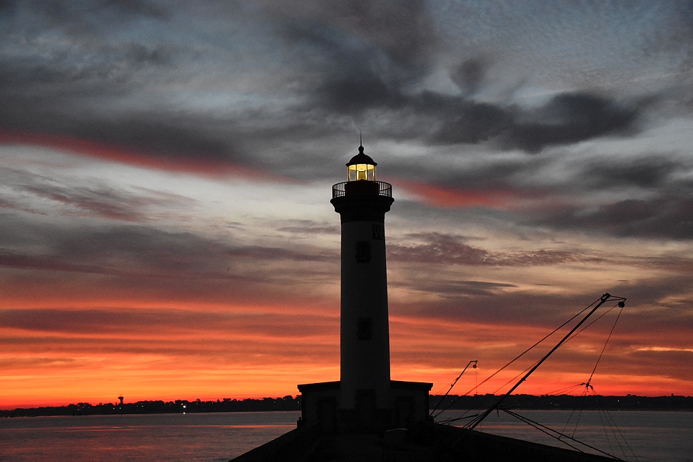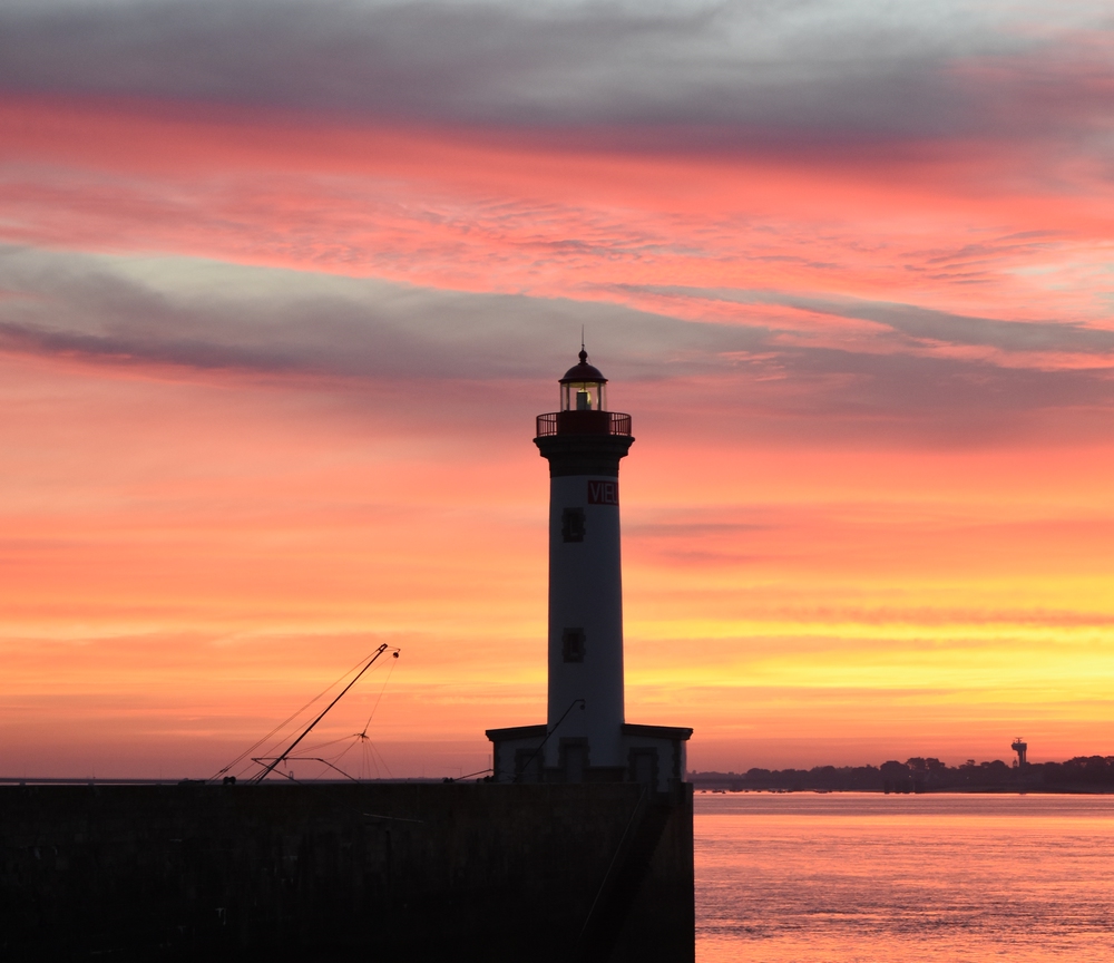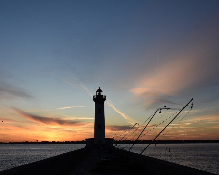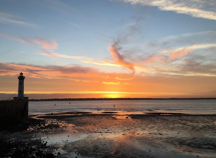 Le soleil a beau se lever chaque matin, un tel spectacle haut en couleurs n’est pas quotidien pour autant. Et quand il se produit, ce n’est jamais tout à fait le même : dans l’intensité, les teintes… Parfois le soleil daigne se montrer en entier et il apparaît alors « de l’autre côté de l’eau », grosse boule rouge ou rond et jaune comme un dessin d’enfant ; parfois il se contente de jouer avec les couleurs dans le ciel. Mais toujours le phare, la jetée et les carrelets forment le plus joli des premiers plans !