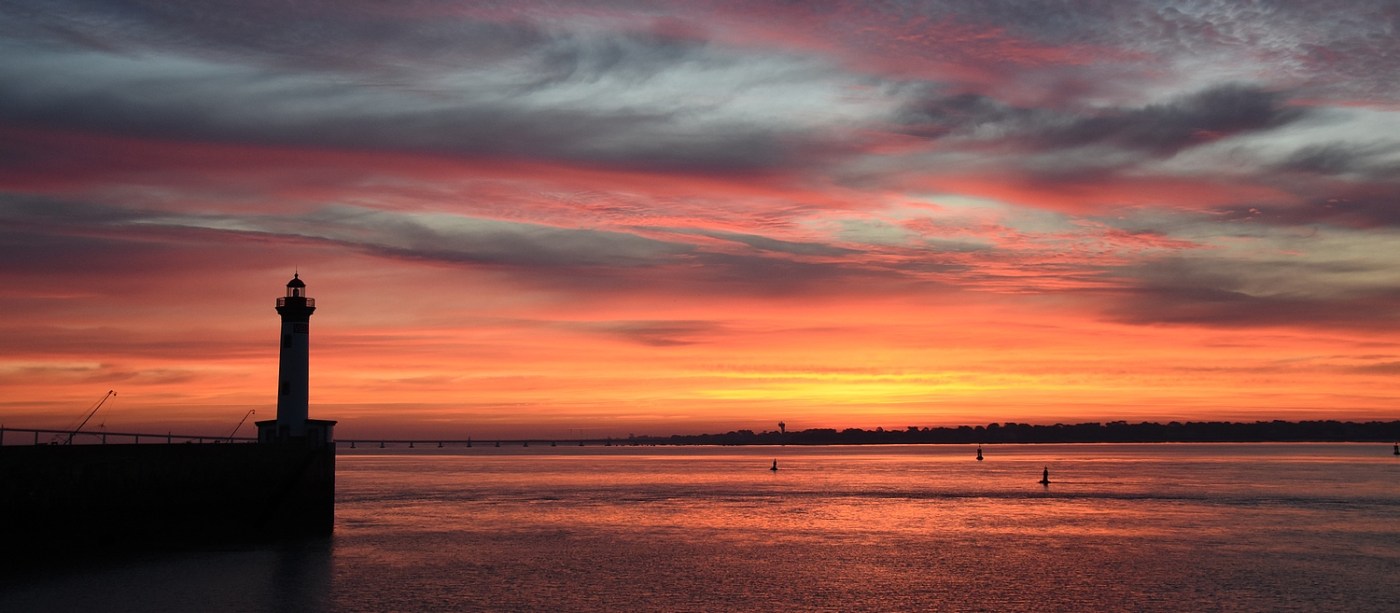 Le soleil a beau se lever chaque matin, un tel spectacle haut en couleurs n’est pas quotidien pour autant. Et quand il se produit, ce n’est jamais tout à fait le même : dans l’intensité, les teintes… Parfois le soleil daigne se montrer en entier et il apparaît alors « de l’autre côté de l’eau », grosse boule rouge ou rond et jaune comme un dessin d’enfant ; parfois il se contente de jouer avec les couleurs dans le ciel. Mais toujours le phare, la jetée et les carrelets forment le plus joli des premiers plans !