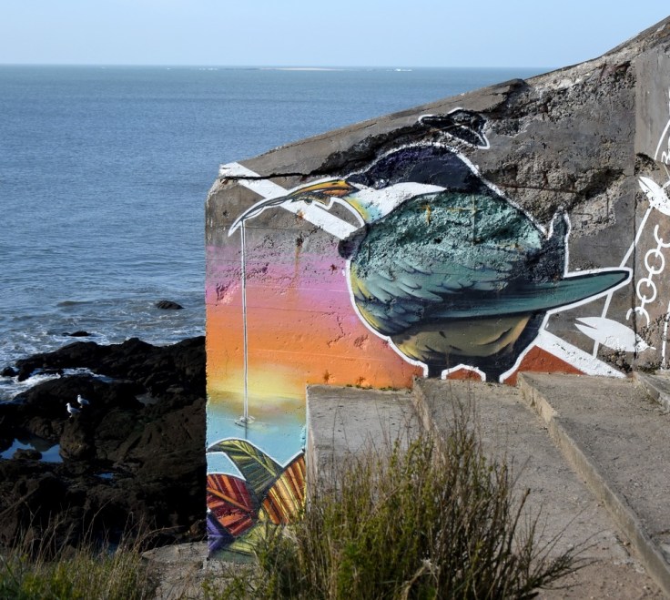 Changement de registre : en approchant de la pointe de Congrigoux, c’est un blockhaus allemand de la Seconde guerre mondiale qui attirera votre regard. Il a perdu de son austérité en servant de support à deux artistes de street-art, Llœill et Eskat, originaires de Loire-Atlantique, invités en 2024 par la ville de Pornichet.