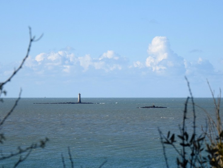 Et voici une autre photo de la Pierre Percée, prise à un autre moment de l’année, où on distingue très bien quelques-unes des éoliennes en mer du premier parc éolien offshore en France, alors qu’on ne voit rien du tout sur la première photo (pourtant toute récente, avec le parc éolien en place). Selon les conditions météo, ces éoliennes qui fournissent environ 20 % de la consommation électrique de la Loire-Atlantique sont en effet plus ou moins visibles.