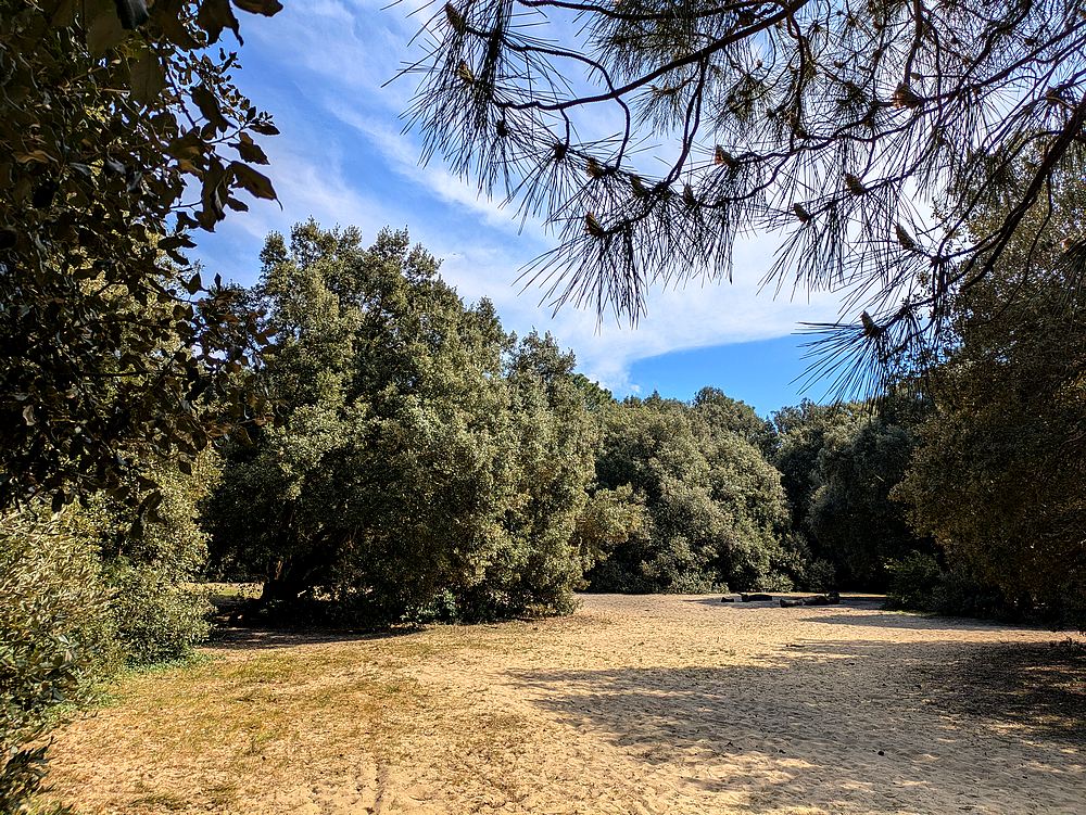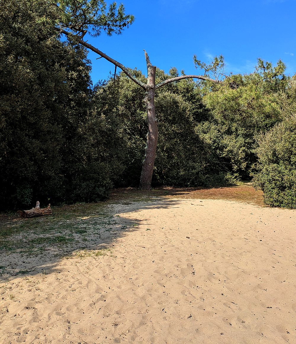 Ce qui rend cette forêt insolite pour moi, ce sont ses clairières. On dirait des plages échouées en forêt ! Comme vous le voyez sur les photos, ce sont ni plus ni moins des étendues de sable… la dune est bien là.
