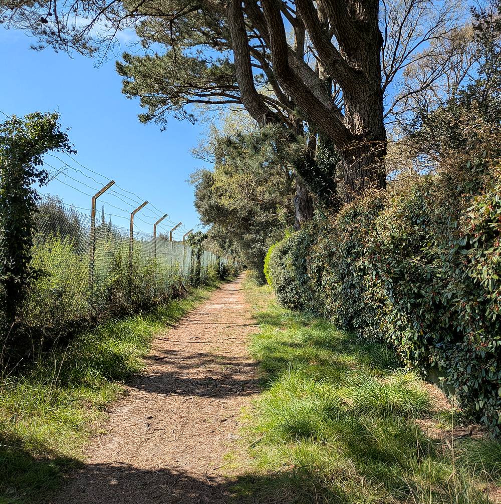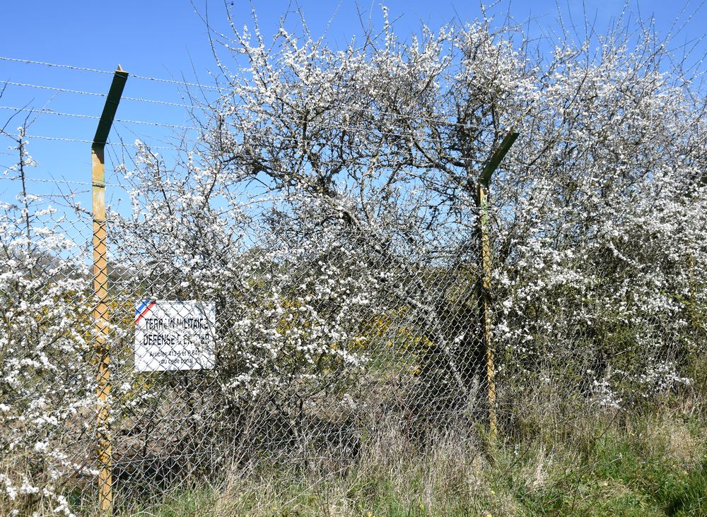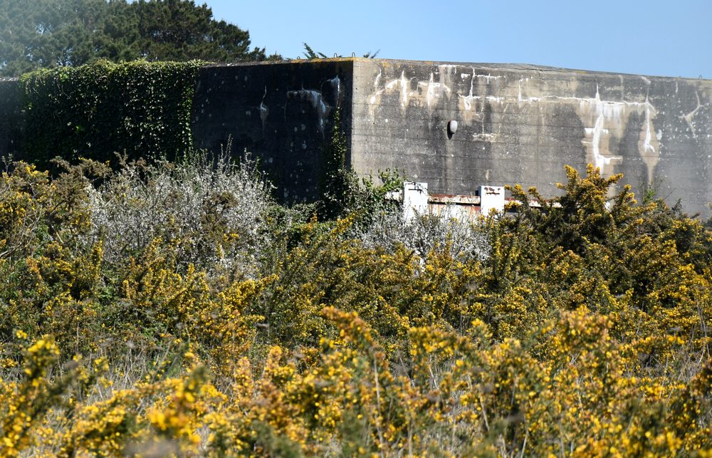 Le petit plus. – Insolite aussi, le voisinage ! Il s’agit du Camp de la Torpille, pour l’essentiel situé sur la commune de Saint-Nazaire. C’est un ancien dépôt à munitions, créé à partir de 1941 par les Allemands et ensuite occupé par la Marine Nationale française jusqu’en 1988. Un chemin de promenade permet d’en faire le tour sur environ un kilomètre et demi (attention, à certains endroits c’est très boueux par temps de pluie). S’il n’y avait le grillage surmonté de fil barbelé avec ses panneaux « terrain militaire », on ne se douterait guère de la nature de ce terrain qui appartient toujours à l’armée. Les blockhaus aperçus ici et là à travers le grillage disparaissent lentement dans des massifs d’ajoncs et de ronces. Il y a quelques années, j’ai encore vu des vaches et des chèvres paître là, maintenant j’ai l’impression qu’il n’y a plus que des oiseaux, des insectes et sans doute des lapins…