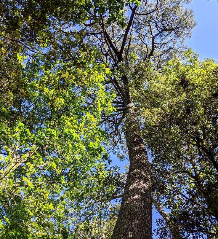 Une boucle d’à peine une heure vous permet de goûter toutes les ambiances de cette forêt : d’abord le chemin d’intérieur jusqu’au menhir, puis retour par le chemin près de la bordure côté mer pour profiter des trouées vers l’océan, des vue sur la plage, les pêcheries, Saint-Nazaire et la côte en face.