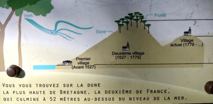 Le petit plus. – Sous le sable se cache… un village ! La dune a en effet « avalé » l’ancien village d’Escoublac il y a deux siècles et demi. A l’époque, la dune, non stabilisée, avançait inexorablement, et en mars 1751, un séisme et une tempête catastrophique avaient exacerbé ce phénomène. Aujourd’hui, une croix marque l’emplacement de l’église de ce village qui fut abandonné vers la fin du 18e siècle lorsqu’il était évident que la lutte contre le sable était perdue. Le destin semble d’ailleurs s’être déchaîné contre le bourg d’Escoublac : un village précédent, construit en bord de mer, avait été balayé par un raz-de-marée au milieu du 15e siècle.