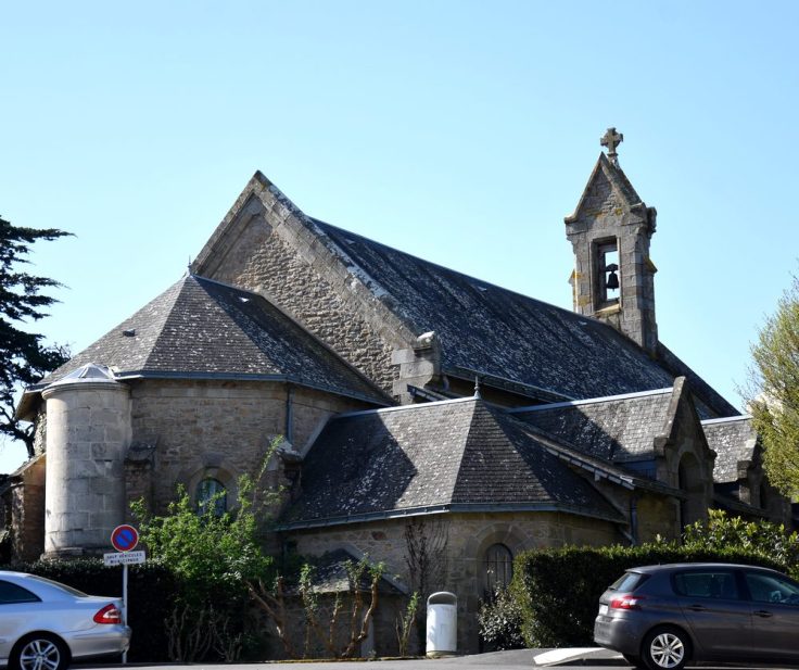 La bonne société de la fin du 19e siècle est encore très attachée à la religion et à ses rituels. Ainsi le dimanche, on va à la messe, point. Tant et si bien que parfois des bâtiments religieux sont prévus dès les premiers aménagements d’un nouveau quartier : c’est le cas au quartier des Arbres à La Baule, où l’investisseur Hennecart bâtit très tôt la chapelle Notre-Dame des Flots qui s’appelle aujourd’hui chapelle Sainte-Anne. Au début du 20e siècle, la population estivale du quartier atteint déjà environ 4 000 personnes, il faut agrandir la chapelle. Sur cette photo on la voit dans sa forme actuelle depuis l’avenue des Platanes. Une véritable petite église bretonne, n’est-ce pas ?