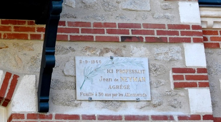 … elles auraient non seulement d’aimables histoires de familles et de vacances à raconter, mais aussi malheureusement des épisodes bien plus tragiques. Par exemple la villa Sunset à La Baule. Elle a accueilli pendant la Seconde Guerre mondiale Jean de Neyman, né à Paris, jeune professeur agrégé de physique et résistant communiste. Etant exclu de l’enseignement, il trouve refuge à La Baule où il donne des cours privés tout en menant une propagande anti-allemande. En contact avec des résistants nazairiens, il rentre dans la clandestinité au printemps 1944. Jean de Neyman sera arrêté en août et fusillé à Saint-Nazaire, au château d’Heinlex, le 2 septembre 1944, à l’âge de 30 ans. Une plaque a été apposée sur la villa pour honorer sa mémoire.