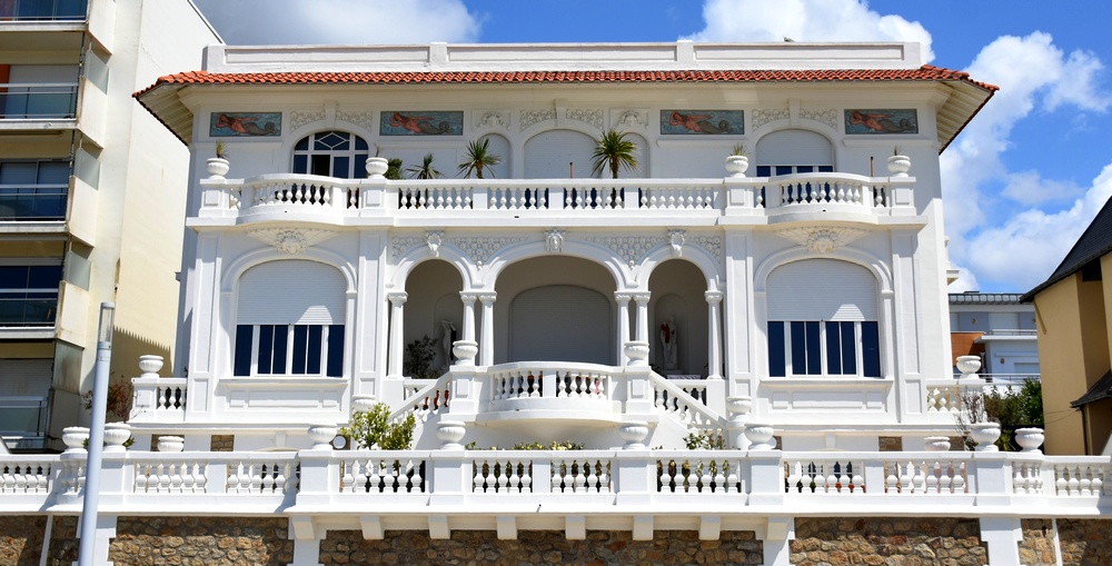 L’architecture des villas balnéaires est extrêmement diversifiée, même si certaines inspirations reviennent assez régulièrement : le château néo-médiéval, la maison basque ou normande, un style italien ou orientalisant, le tout revu et corrigé par les fantaisies des propriétaires… Mais au 20e siècle on constate aussi une certaine modernité, notamment le style « paquebot » des années 1930. Avec ses formes géométriques, sobres et épurées il évoque l’Art déco ; ses terrasses et balcons à bastingages semblent droit venir des grands paquebots transatlantiques tels Ile-de-France (1926) ou Normandie (1935) qui naissent alors au chantier naval de Saint-Nazaire. Certaines des nombreuses villas que l’architecte Adrien Grave a construites à La Baule et Pornichet à partir des années 1920 s’inscrivent dans ce courant, comme par exemple la villa Coq de Roche.