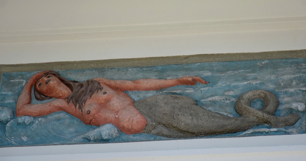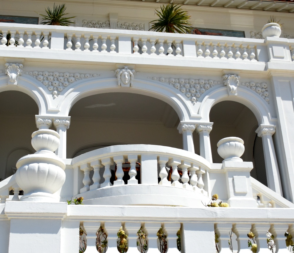 D’un blanc éclatant, avec une façade toute en loggias, escaliers, balustrades, colonnades, mascarons et même sirènes en bas-relief…