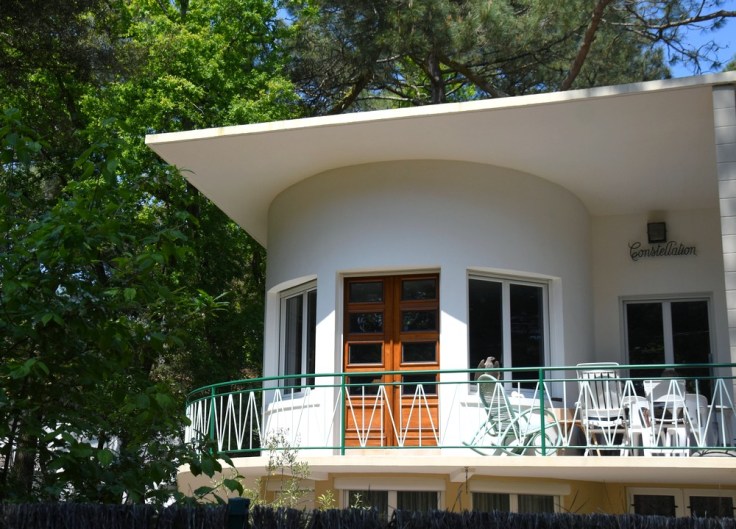 Si le paquebot représente le sommet de la modernité des années 1930, l’avion prendra la relève après la guerre. A Saint-Brevin, la villa Constellation aux formes très géométriques, construite vers 1960, rend hommage à un des premier avions de ligne, le Lockheed Constellation, avion à hélice avec quatre moteurs. Il y a même un lien précis entre la maison et l’avion : le commanditaire de la villa avait été un des pilotes du premier vol Air France en Constellation en 1946 pour ouvrir la ligne Paris – New York, à l’époque encore avec deux escales, en Irlande et Terre-Neuve !