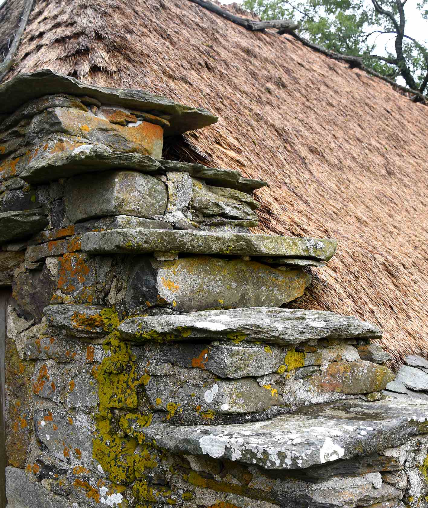J’aimerais bien un jour retourner dans cette région montagneuse et âpre, en espérant toutefois une météo plus clémente. Or il suffit de voir l’architecture traditionnelle des fermes pour comprendre que le climat doit souvent être rude : sous leur couverture de lauzes ou de chaume, les bâtiments en grosses pierres qui laissent deviner l’épaisseur des murs, offrent peu d’ouvertures et semblent faire le dos rond devant le vent, le froid, la pluie, peut-être aussi la grosse chaleur estivale.