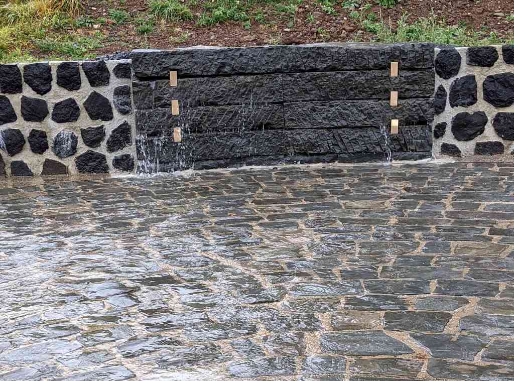 L’ « authentique » se fait très discrète. Captée par le Touring Club de France en 1936, elle est censée couler dans un pavage circulaire puis passer sous la route. Le premier jour de notre passage, pas le moindre filet d’eau ; on nous dit que les travaux du parking auraient eu des conséquences fâcheuses pour la source. Mais voilà que grâce aux fortes précipitations, la source (miraculeuse?) finit par se mettre à couler ! J’avoue toutefois que rien ne permet savoir si c’est l’eau de pluie ou l’eau de Loire qui ruisselle sur les pavés…