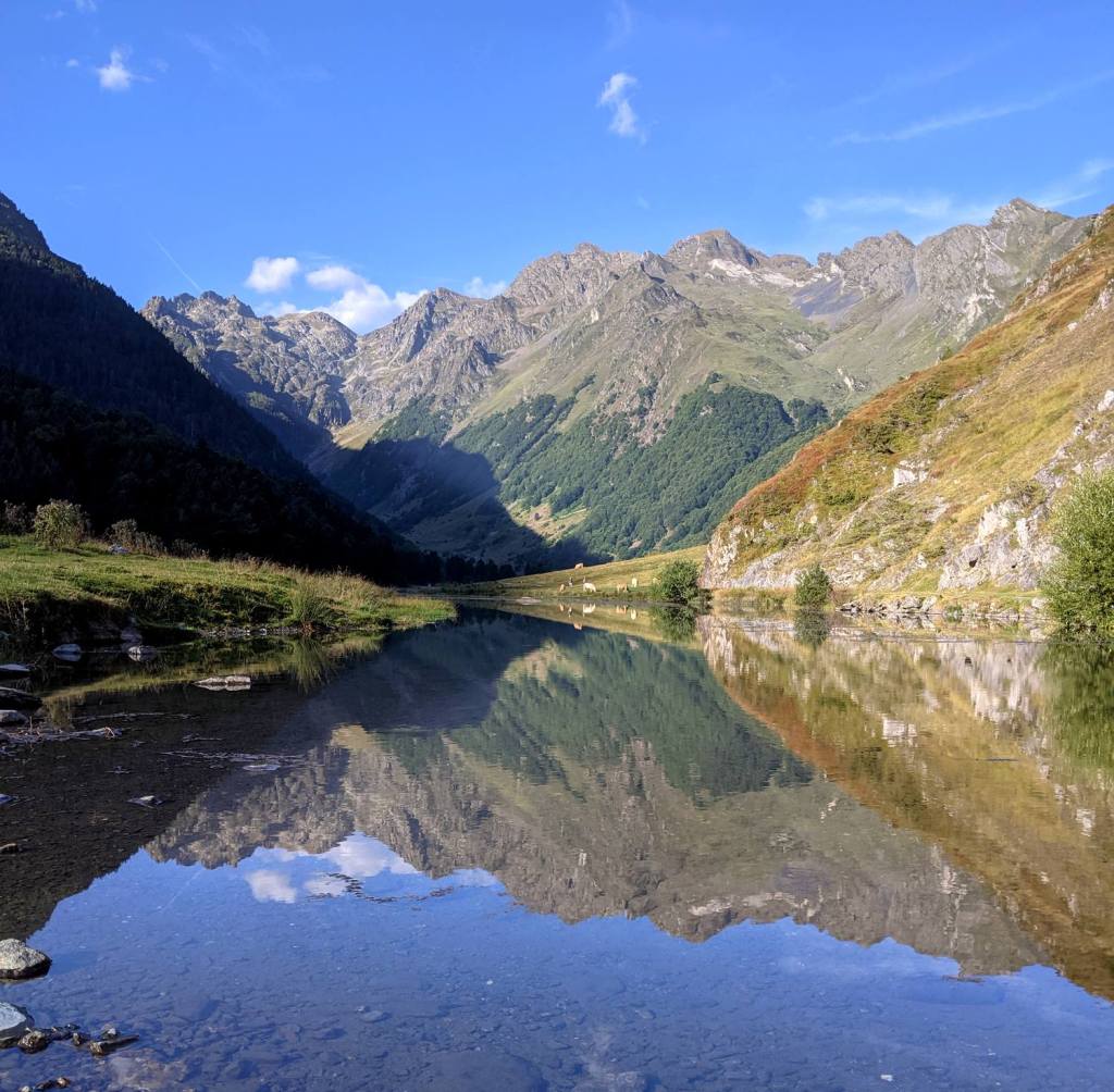 Je n’ai pas du tout l’âme d’une alpiniste, donc en montagne je reste autant que possible sur des chemins faciles. Pas besoin de prendre des risques pour pouvoir admirer le paysage, sa beauté se livre aussi au pied de la montagne. Par exemple sur le chemin qui fait le tour du lac d’Estaing, dans le Val d’Azun (Hautes-Pyrénées).