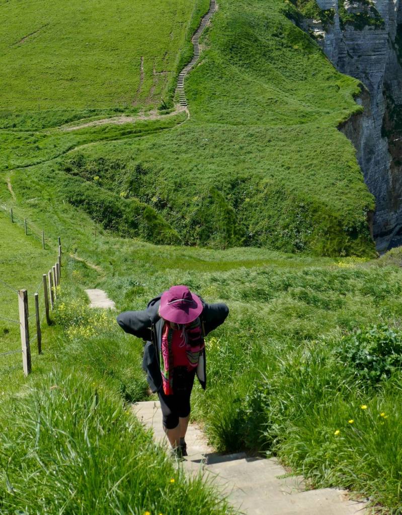 En Normandie, le long de la côte d’Albâtre, le sentier qui serpente en haut des falaises est magnifique. En respectant bien sûr la distance de sécurité avec le bord de la falaise ! J’y ai marché au printemps, l’an dernier ; en bas, à Etretat notamment, il y avait foule, en haut, après le premier kilomètre, nous étions pratiquement seuls.