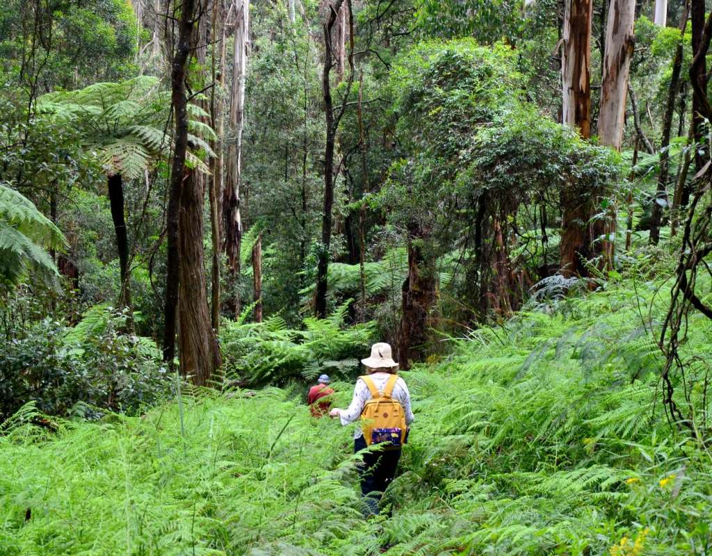 En Australie, le chemin en forêt s’apparente parfois à une piste dans une jungle, à travers d’impressionnants massifs de fougères.
