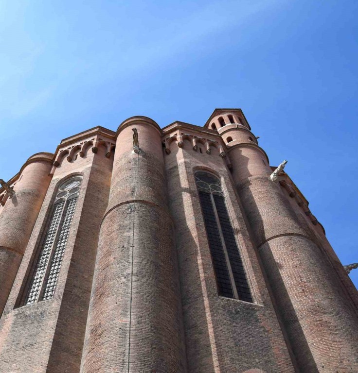 Je ne connais pas « la » ville rose, Toulouse, mais l’été dernier sur la route des vacances, j’ai fait halte dans « une » ville rose, Albi. Juste quelques heures pour flâner dans la vieille ville et surtout pour visiter Sainte-Cécile, la plus grande cathédrale en briques du monde. Elle est classée patrimoine mondial UNESCO avec l’ensemble architectural « la Cité épiscopale d’Albi » dont elle fait partie.