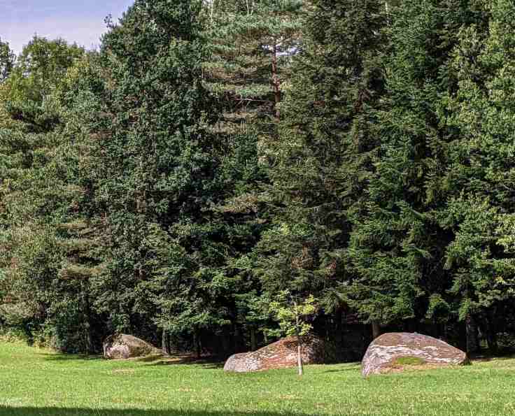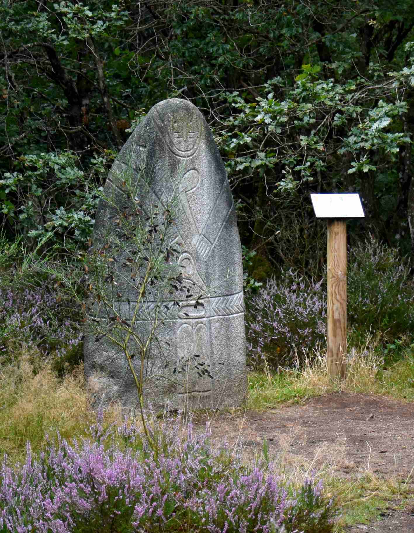 Et puis j’ai fait connaissance avec des « pierres » exceptionnelles : des statues-menhirs. J’avoue que je n’en avais jamais entendu parler, pourtant ce sont les plus anciennes représentations de l’homme en grand format que l’on connaît en Europe occidentale. Elles ont (environ) entre 4 000 et 5 500 ans ! Plus de 100 statues-menhirs ont été trouvées depuis la fin du 19e siècle dans le Tarn et des départements voisins ; elles sont conservées dans différents musées, mais des copies de plusieurs statues-menhirs ont été érigées autour de la Maison du Sidobre. En granit, évidemment !