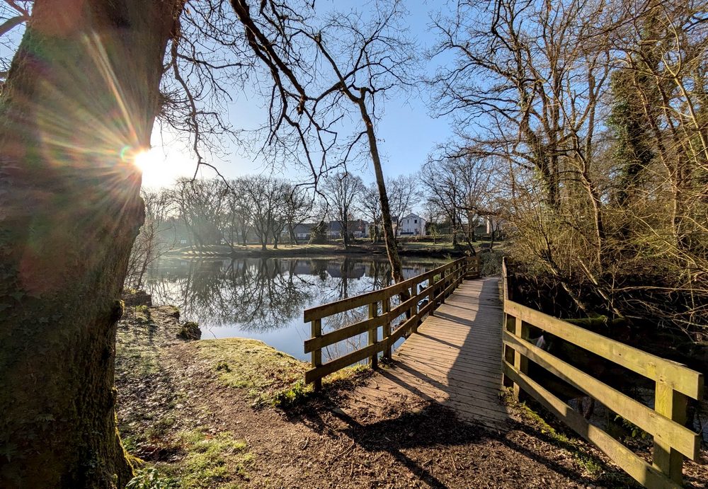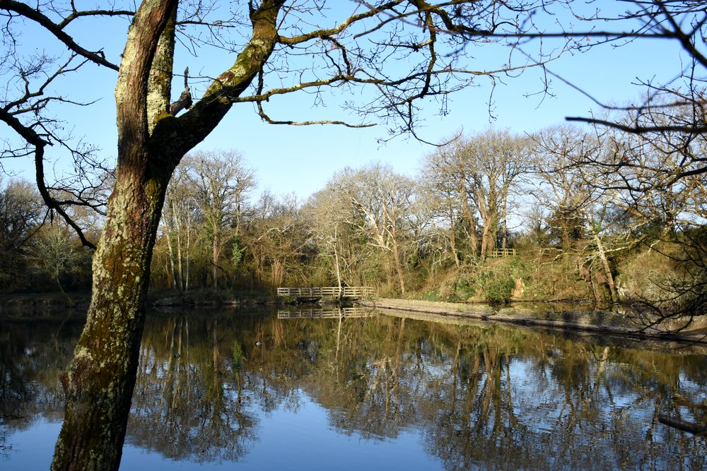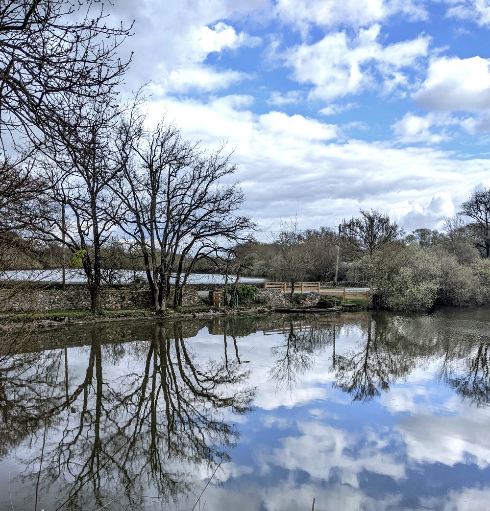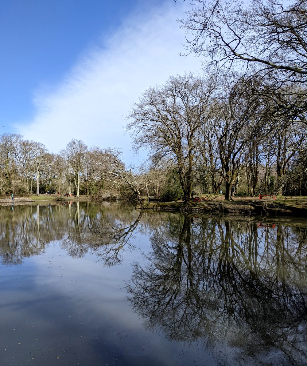 Des branches se mirent (et s’admirent ?) dans l’étang…