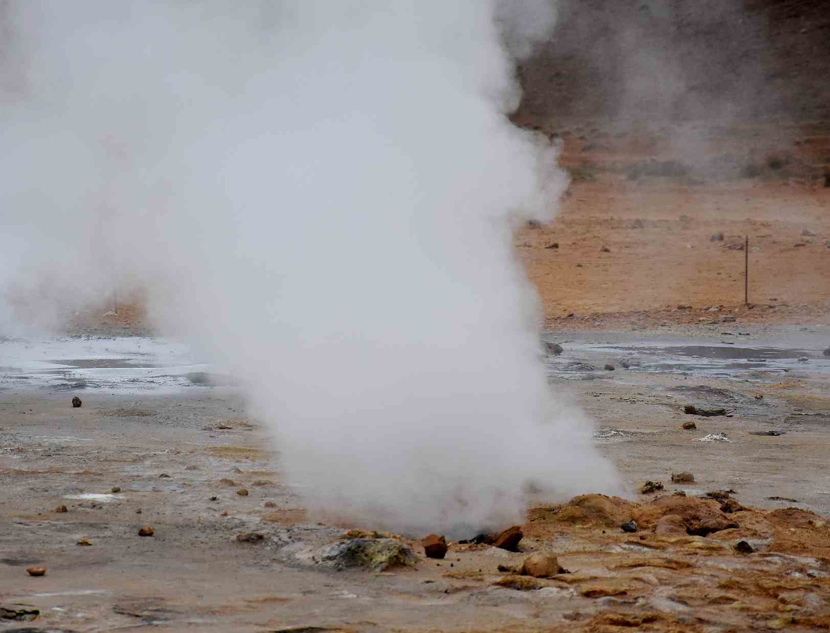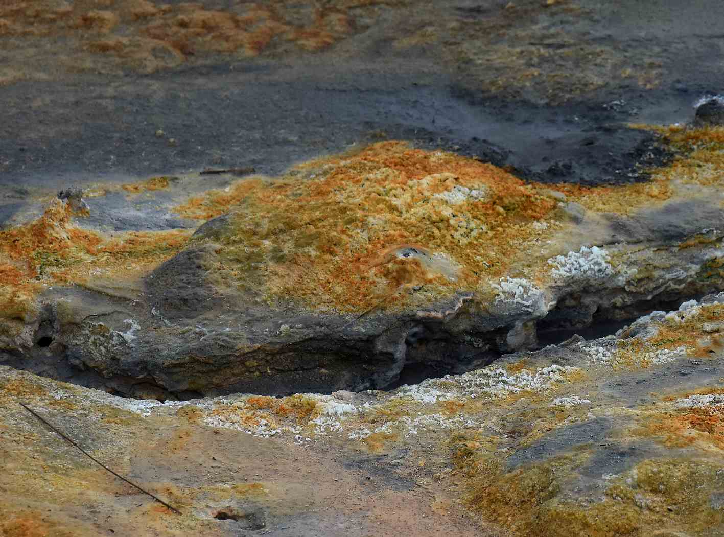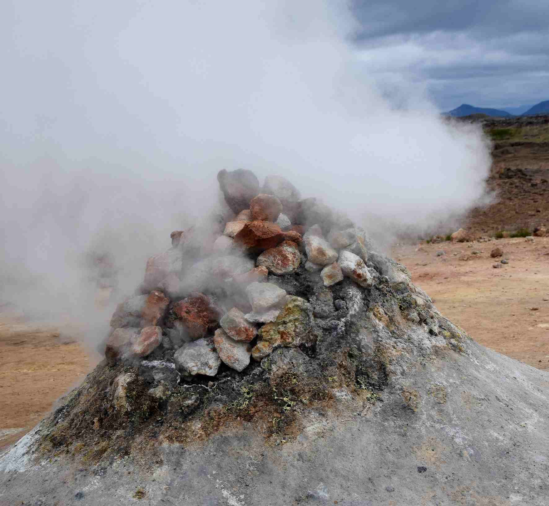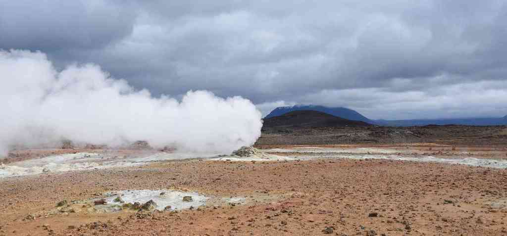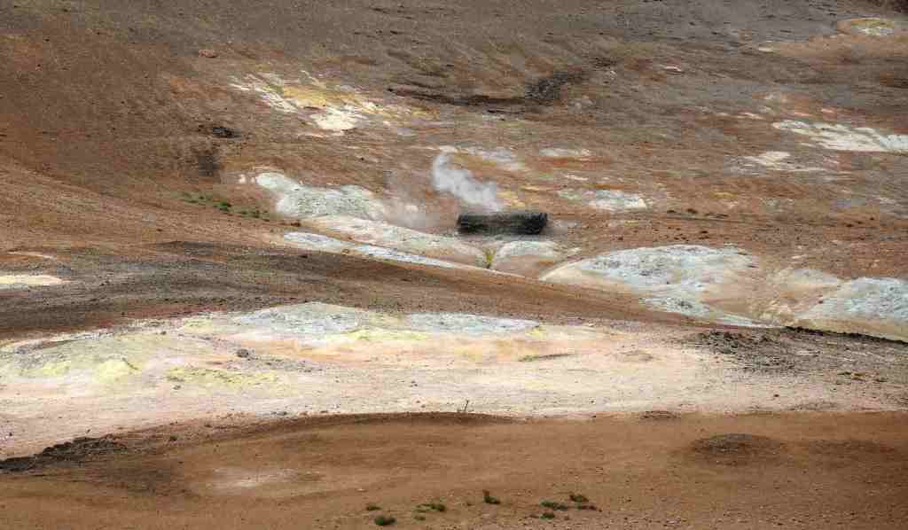 Je suis restée interloquée devant un petit tertre qui est en fait une solfatare, c’est-à-dire un point chaud où du soufre est rejeté en quantité importante, sous forme de vapeur. L’énorme panache de vapeur sort de terre avec une très forte pression ce qui donne un bruit incessant et indescriptible. Là on m’aurait dit que j’étais devant une porte de l’enfer, je l’aurais cru immédiatement !