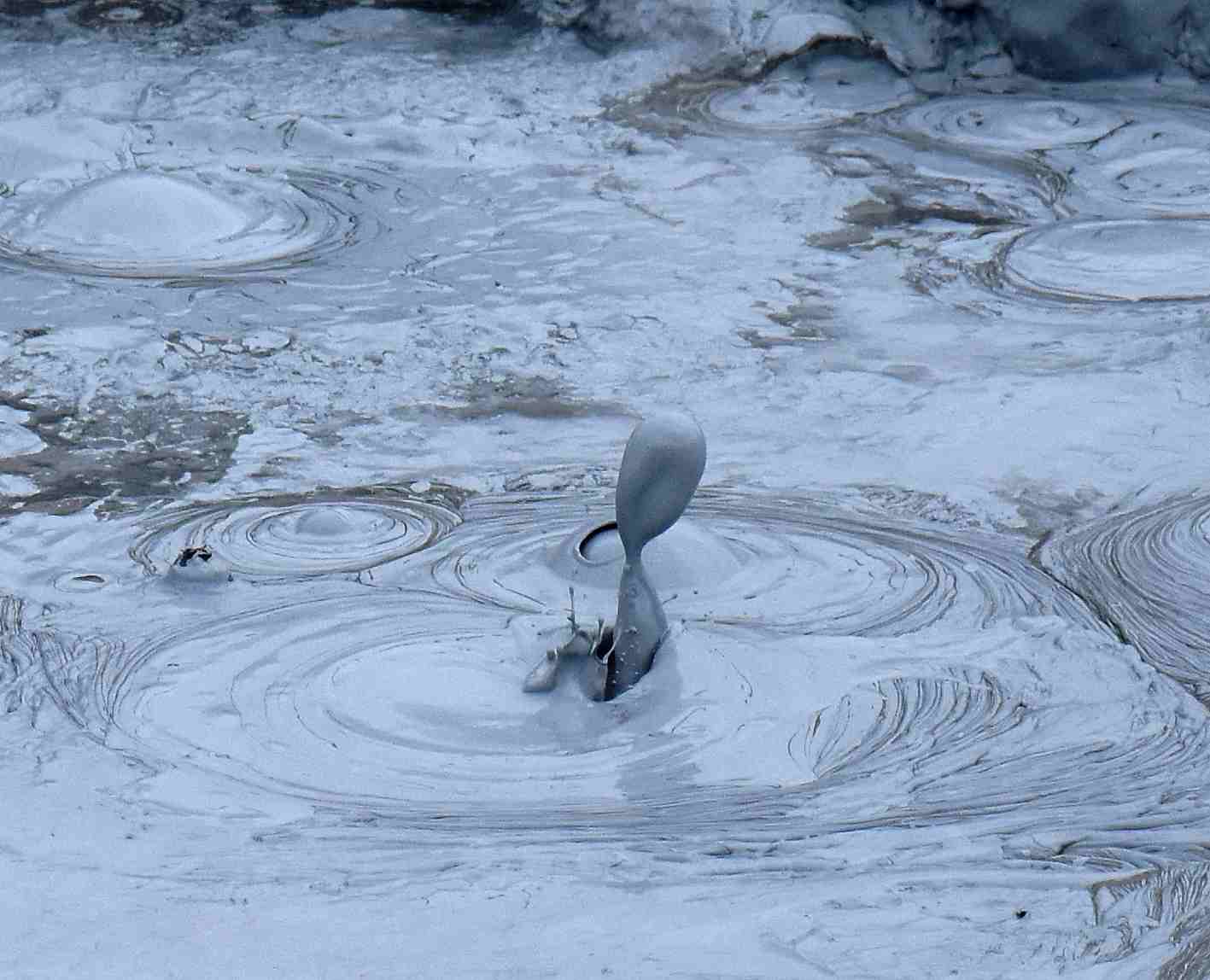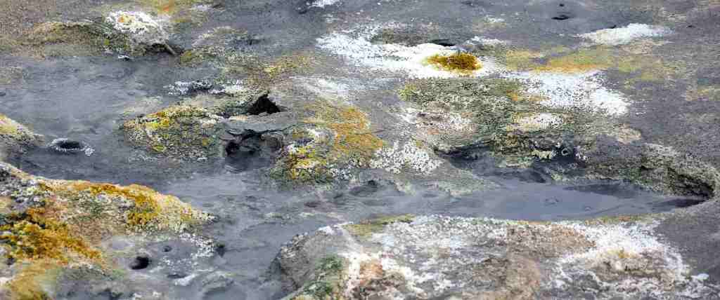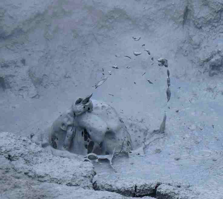 On trouve de nombreuses mares de boue bouillonnante, ou « marmites du diable », sur tout le site. Il paraît que la température de ces boues, elles aussi d’origine volcanique, va de 80 à 200°… je n’ai pas vérifié !