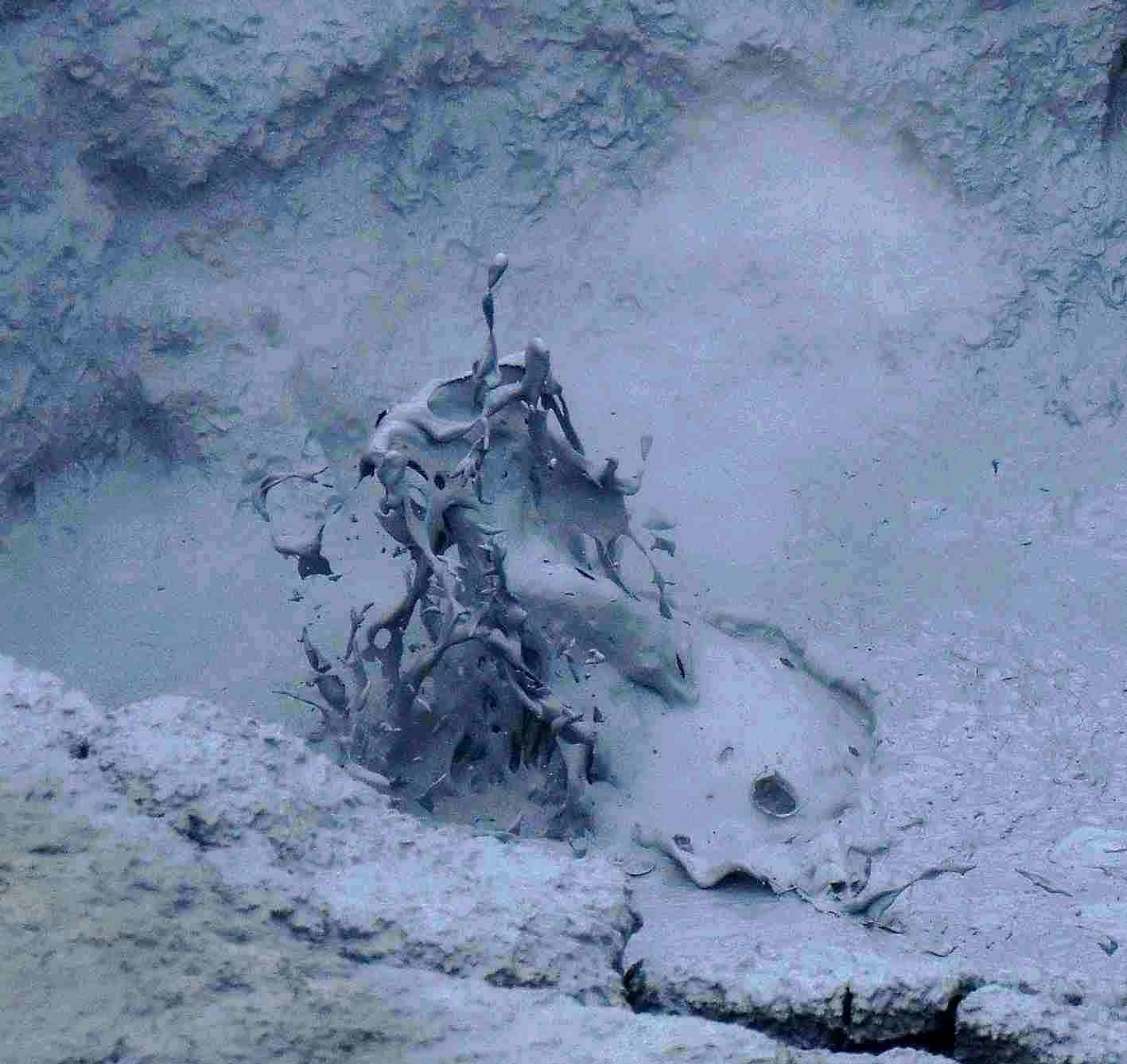 Lorsque les grosses bulles de boue éclatent, des formes fantasmagoriques naissent et disparaissent aussitôt dans une véritable danse macabre.