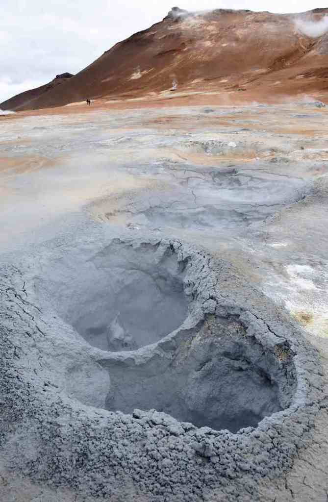 Tout ce que j’ai vu était incroyable, mais je voudrais particulièrement partager avec vous les émotions vécues dans un endroit très étrange. Je vous emmène à Hverir, une grande zone géothermique au pied de la montagne Námafjáll, dans le nord de l’île. Un des endroits les plus fascinants que j’ai jamais vus ! Ça fume, ça sent le soufre (autrement dit, ça pue l’oeuf pourri !), ça bouillonne, ça chauffe… on est sur une autre planète.